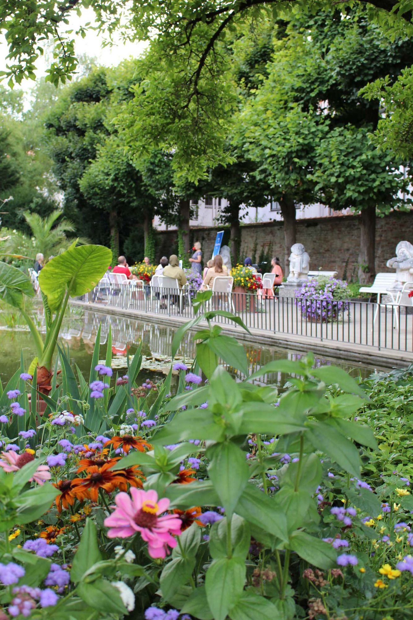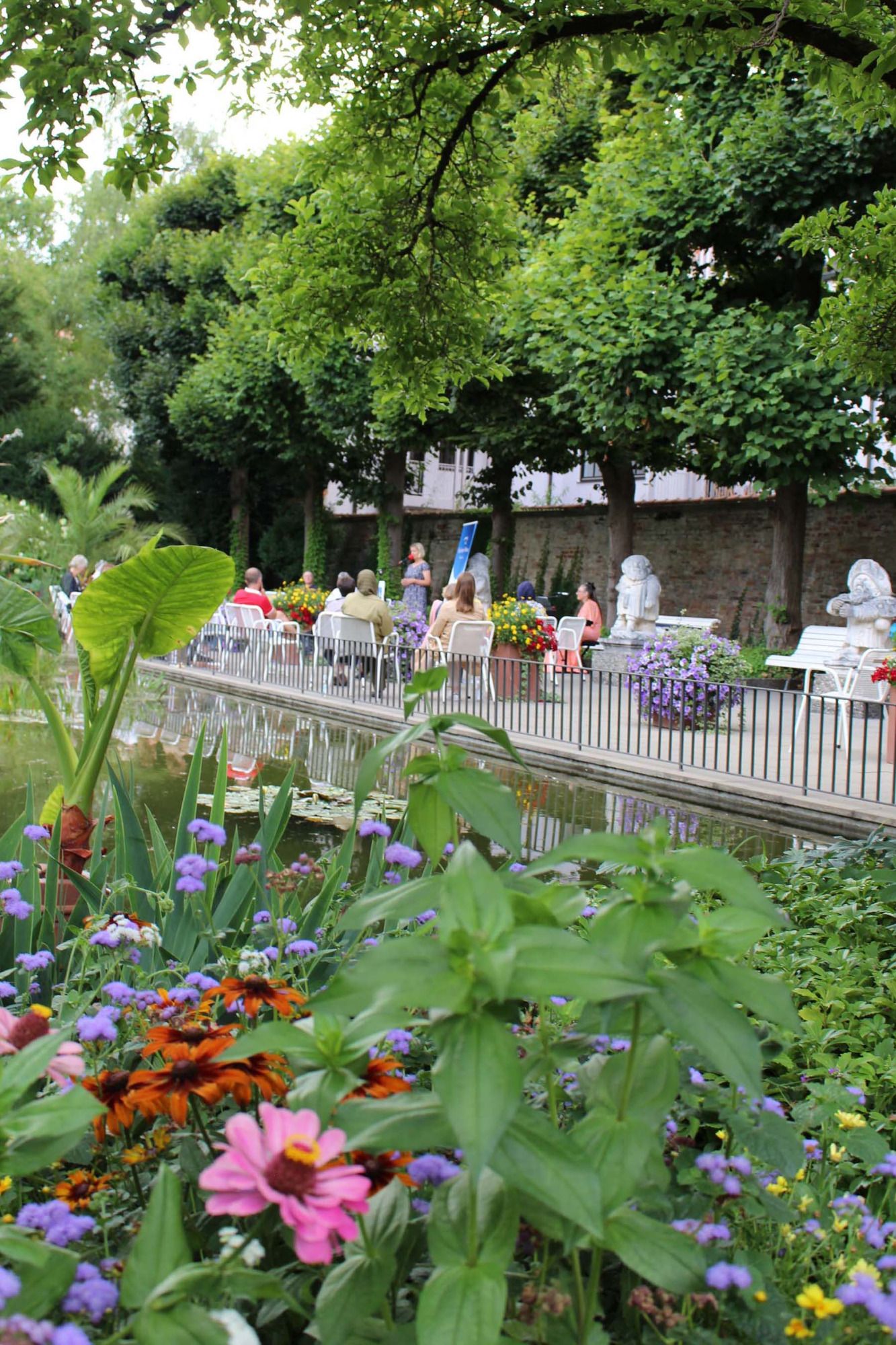 Wir platzierten uns neben dem Springbrunnen und stellten die Stühle für unsere Zuhörer:innen bereit.