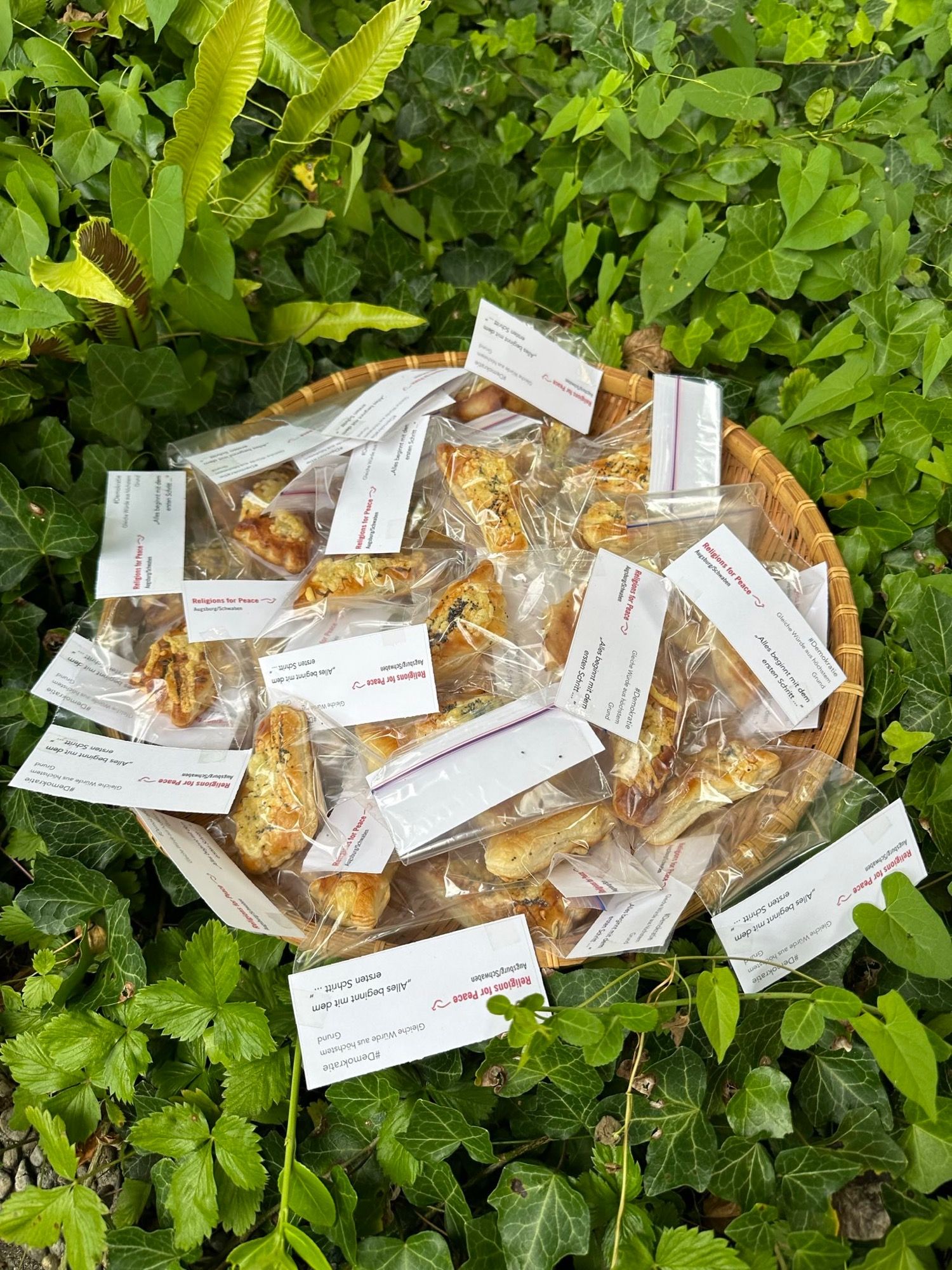 Nach unseren Beiträgen verteilten wir Gebäck in Form eines Fußes, verpackt mit der Aufschrift: Alles beginnt mit dem 1. Schritt – RfP. Ursula und Luisa hatten es gebacken, würzig und süß, für jeden Geschmack etwas. Dafür gab es dann auch großzügig Spenden vom Publikum.